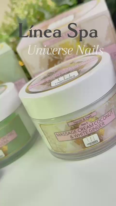 Crema de masaje con coco y White ginger (jengibre blanco) combinación profunda con efecto estimulante y sensorial, por lo que es ideal para uso profesional como para autocuidado. Para trabajar servicios de manicura y pedicura. 150gr.
